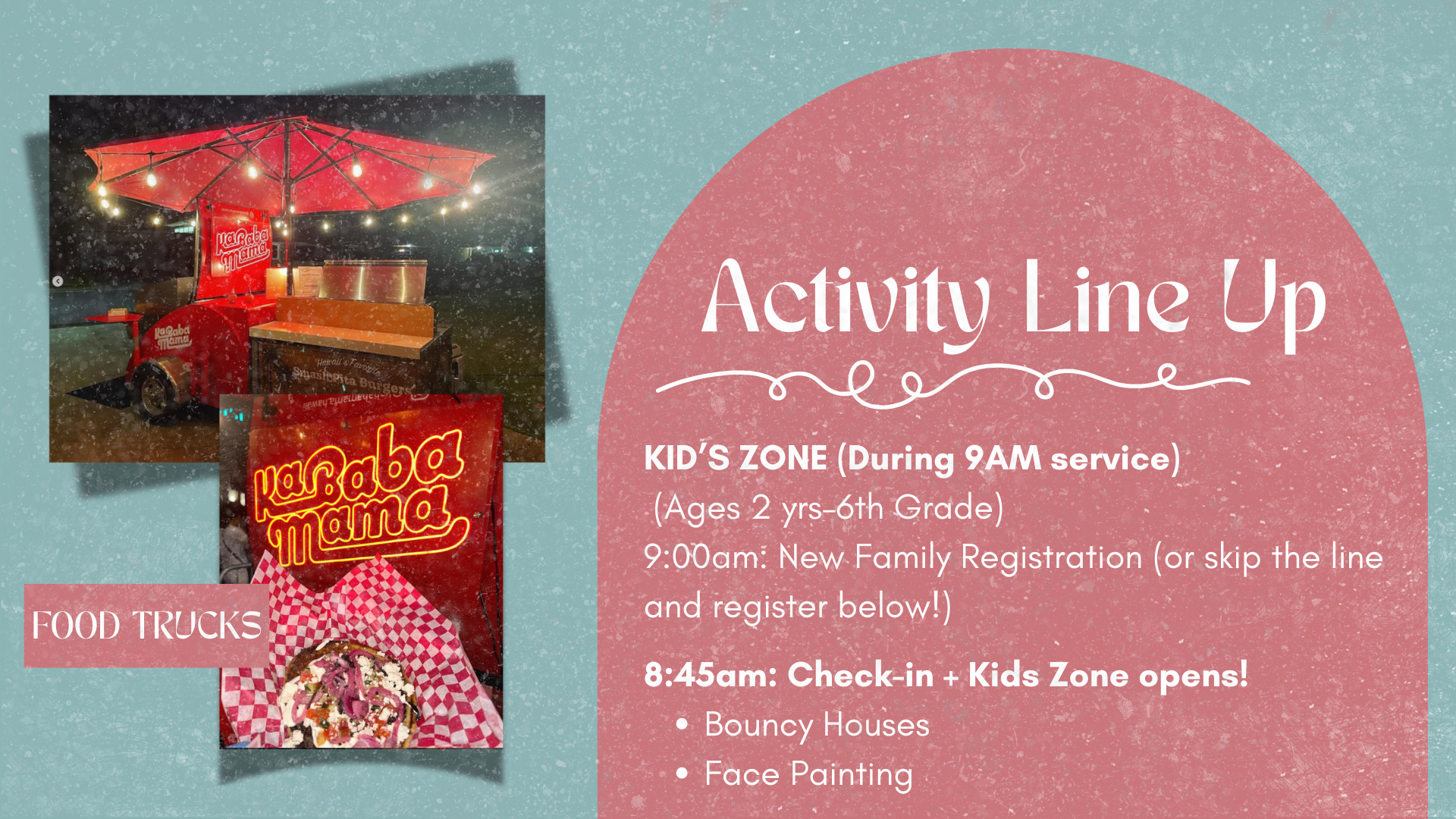 Kids Zone check-in opens at 8:30 AM, so families with children are encouraged to arrive early.